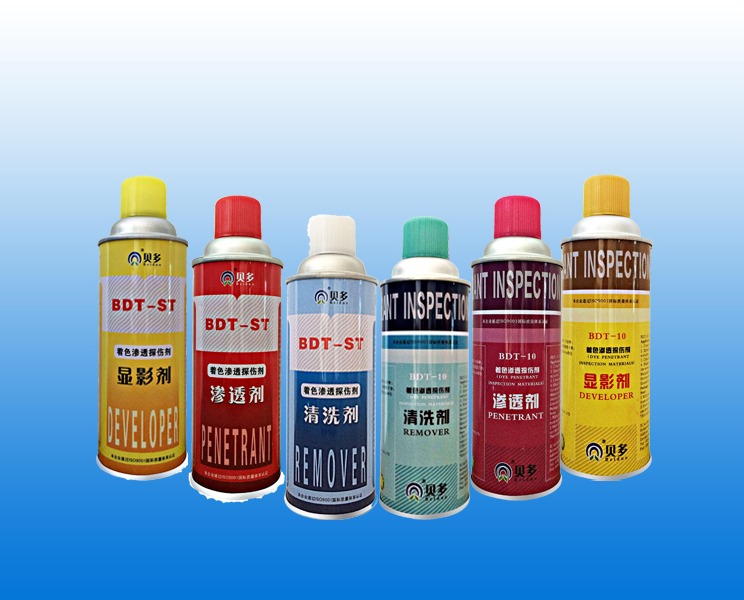 著色滲透探傷劑用于非鐵磁性材料表面缺陷檢測,產(chǎn)品顯像迅速,清晰,線條細,不暈染。廣泛應用于化工、造船、發(fā)電、航空、機械、汽車、冶金、石油、鐵路、受壓容器等部門的探傷檢測。
